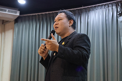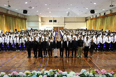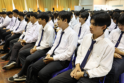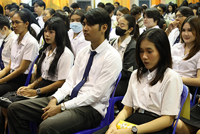 รองศาสตราจารย์ ดร.ประมุข อุณหเลขกะ อธิการบดีมหาวิทยาลัยเทคโนโลยีราชมงคลสุวรรณภูมิ มอบหมายให้ ผู้ช่วยศาสตราจารย์สัญญา คำจริง รองอธิการบดี เป็นประธานเปิดโครงการปัจฉิมนิเทศนักศึกษา ศูนย์นนทบุรี ประจำปีการศึกษา 2568 พร้อมกล่าวโอวาทเพื่อเป็นแนวทางในการดำเนินชีวิตหลังสำเร็จการศึกษา โดยมี นางสาวมณฑิรา สาระพันธ์ รักษาการผู้อำนวยการกองบริหารทรัพยากรนนทบุรี กล่าวรายงานวัตถุประสงค์
