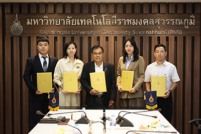 รองศาสตราจารย์ ดร.ประมุข อุณหเลขกะ อธิการบดีมหาวิทยาลัยเทคโนโลยีราชมงคล สุวรรณภูมิ มอบหมายให้ ผู้ช่วยศาสตราจารย์เฉลิม ขุนเอียด รองอธิการบดีประจำศูนย์พื้นที่นนทบุรี เป็นประธาน กล่าวต้อนรับและแสดงความยินดีต่อความร่วมมือครั้งสำคัญ พร้อมร่วมลงนามกับ ArJoo Saemee (Marketing Manager) บริษัท ดาฮัว แอคเคาท์ แอนด์แท็กซ์ (ไทยแลนต์) จำกัด, Li Zhiming (CEO) บริษัท วิคตอรี่ ไจแอนท์ เทคโนโลยี จำกัด, Zhang Shumei (CEO) บริษัท กู๊ด จ็อบ ทาเส้นท์ กรุ๊ป (ไทยแลนด์) จำกัด และ Guo Yaowei (Project Manager) บริษัท ไอเอ็ม ตัน อินเตอร์เนชั่นแนล โลจิสติกส์ จำกัด โดยมี อาจารย์วนิดา วงศ์บรรณาคม ผู้ช่วยอธิการบดี กล่าวรายงานความเป็นมาของโครงการฯ ซึ่งมีผู้บริหาร คณาจารย์ และผู้แทนจากทั้งสี่องค์กรร่วมเป็นสักขีพยาน