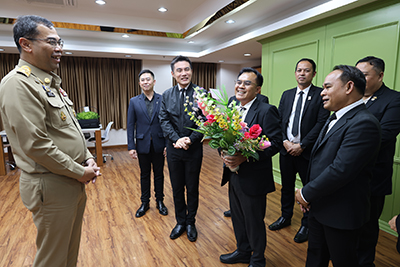 เมื่อวันอังคารที่ 9 ธันวาคม พ.ศ. 2568 ณ ศาลากลางจังหวัดนนทบุรี รองศาสตราจารย์ ดร.ประมุข อุณหเลขกะ อธิการบดีมหาวิทยาลัยเทคโนโลยีราชมงคลสุวรรณภูมิ มอบหมายให้ ผู้ช่วยศาสตราจารย์เฉลิม ขุนเอียด รองอธิการบดีประจำศูนย์พื้นที่นนทบุรี เข้าร่วมแสดงความยินดีกับ นายเชษฐา โมสิกรัตน์ เนื่องในโอกาสเข้ารับตำแหน่ง ผู้ว่าราชการจังหวัดนนทบุรี