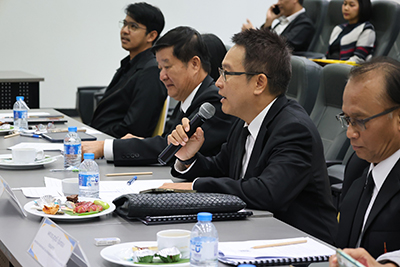 ดร.พยุง ศักดาสาวิตร กรรมการสภามหาวิทยาลัยฯ ผู้ทรงคุณวุฒิ ประธานกรรมการสรรหาคณบดีคณะวิศวกรรมศาสตร์และสถาปัตยกรรมศาสตร์ มหาวิทยาลัยเทคโนโลยีราชมงคลสุวรรณภูมิ (มทร.สุวรรณภูมิ) พร้อมด้วยคณะกรรมการฯ ร่วมรับฟังการนำเสนอวิสัยทัศน์และแนวทางการพัฒนาองค์กรของผู้เข้ารับการสรรหาคณบดีคณะวิศวกรรมศาสตร์และสถาปัตยกรรมศาสตร์