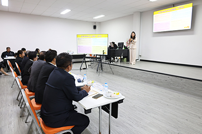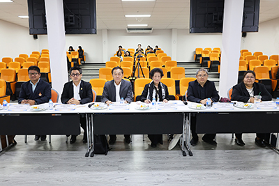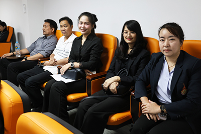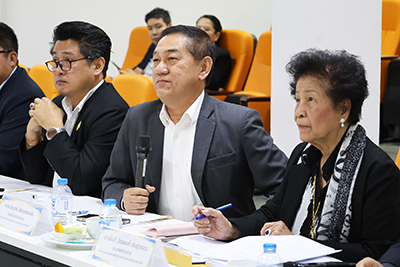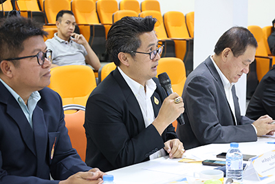 นางยินดี วัชรพงศ์ ต่อสุวรรณ กรรมการสภามหาวิทยาลัยฯ ผู้ทรงคุณวุฒิ ประธานกรรมการสรรหาคณบดี คณะวิทยาศาสตร์และเทคโนโลยี มหาวิทยาลัยเทคโนโลยีราชมงคลสุวรรณภูมิ (มทร.สุวรรณภูมิ) พร้อมด้วยคณะกรรมการฯ ร่วมรับฟังการนำเสนอวิสัยทัศน์และแนวทางการพัฒนาองค์กรของผู้เข้ารับการสรรหาคณบดี คณะวิทยาศาสตร์และเทคโนโลยี